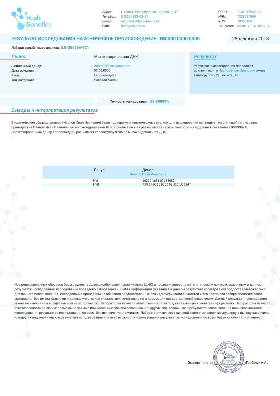 Наша лаборатория проводит ДНК-исследования по женской линии, благодаря высокотехнологичному оборудованию и команде опытных экспертов мирового уровня. Мы также используем собственную базу данных ДНК образцов, включающую людей из разных стран, чтобы точно определить этническое происхождение клиента. Это делает нашу лабораторию лидером в России в области генетических тестов.